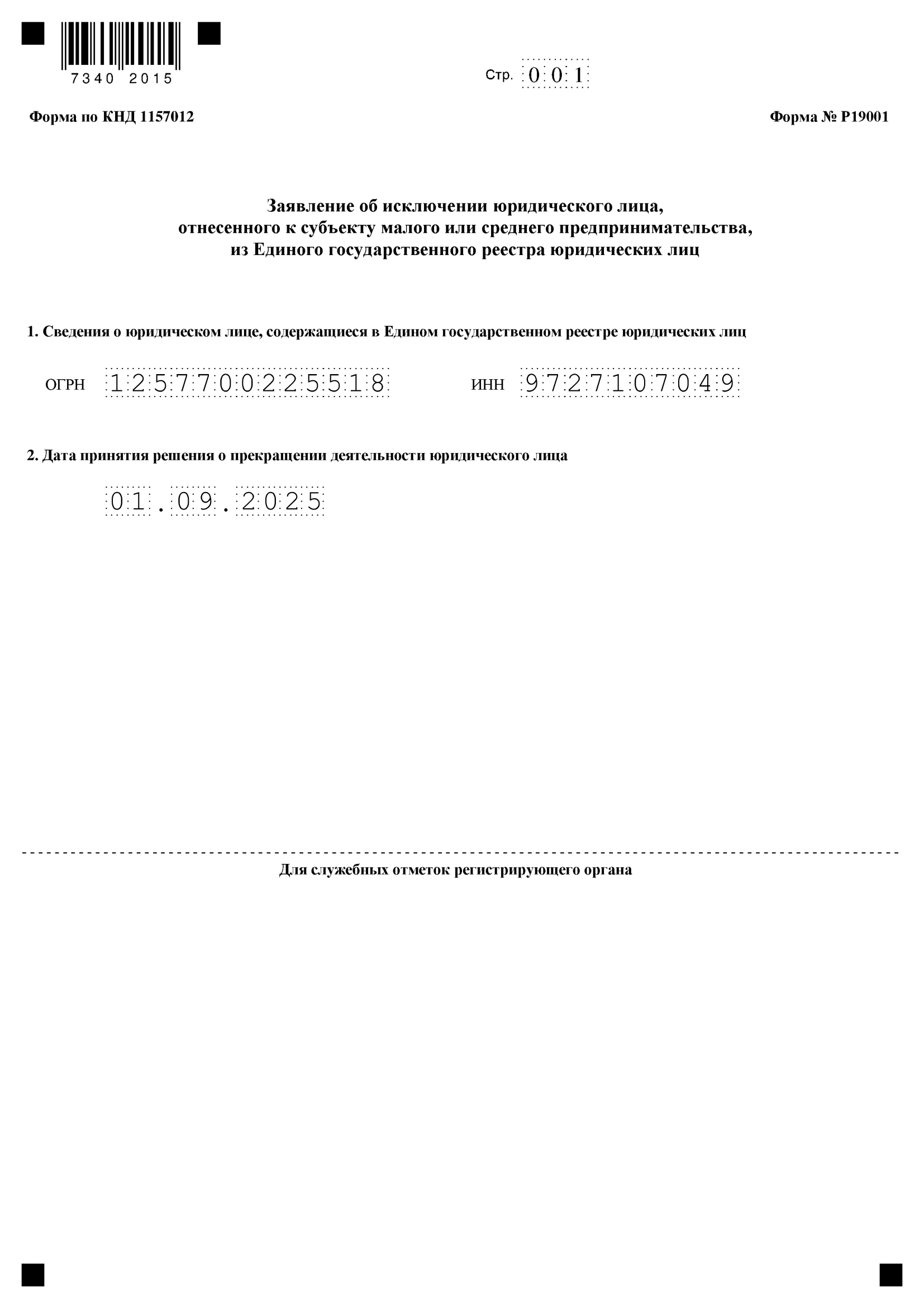- Упрощенная ликвидация: 1 заявление (Р19001)